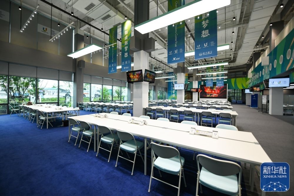 ?↑這是7月13日拍攝的成都大運會主媒體中心的會客廳。新華社記者 王曦 攝