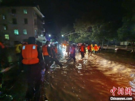 富陽(yáng)區(qū)搶險(xiǎn)救援現(xiàn)場(chǎng)。富陽(yáng)區(qū)委宣傳部供圖