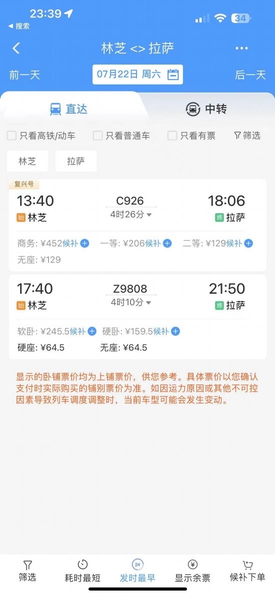 通過在鐵路售票APP上查詢發(fā)現(xiàn),從林芝開往拉薩的復(fù)興號城際列車的二等座票價為129元,直達(dá)特快列車硬座為64.5元。“相比較原先180元的客運(yùn)汽車票價,直達(dá)特快列車便宜了近乎三分之一?!辈芟壬锌卣f道。