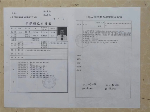 劉萬軍:舉報(bào)過,但柳城縣紀(jì)檢部門之前一直沒有受理,說不屬于他們管。后來,我把這件事反映給媒體,當(dāng)時(shí)媒體記者將我的材料向柳州紀(jì)檢部門反映以后,今年7月12號(hào),我又交了舉報(bào)材料,他們才同意受理,但是沒有給我出具回執(zhí)。(劉萬軍提供的與柳城縣紀(jì)委信訪室通話錄音內(nèi)容顯示,紀(jì)委已受理其舉報(bào)的“個(gè)人檔案丟失”一事。)