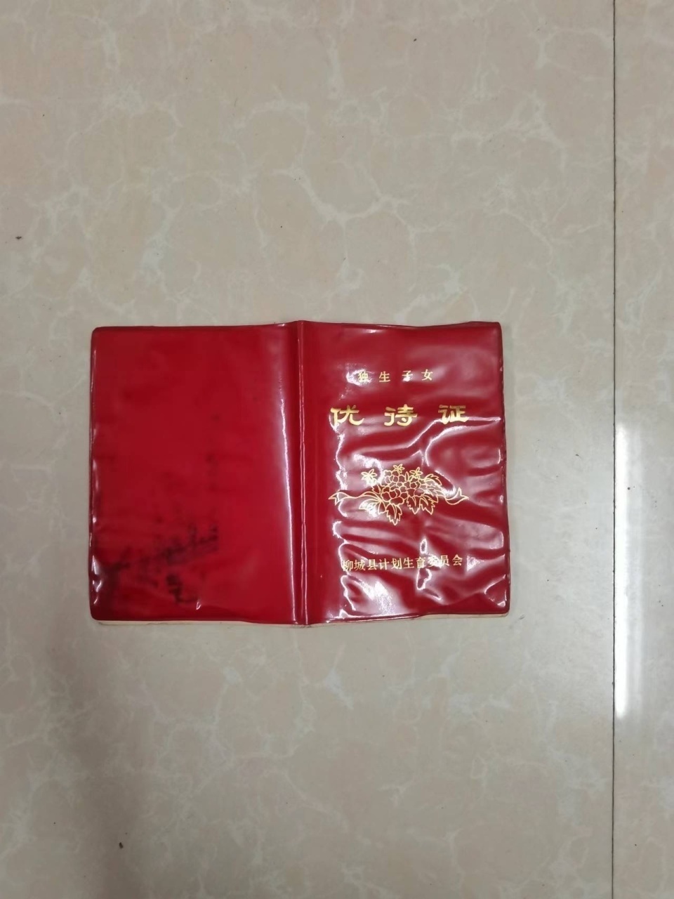獨(dú)生子女費(fèi)用發(fā)放的相關(guān)證明。圖/劉萬軍提供