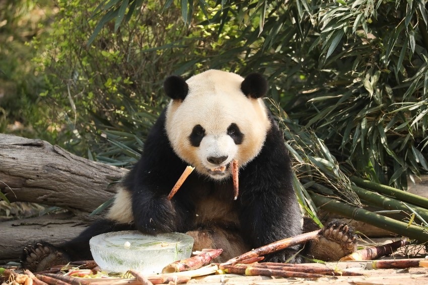 據(jù)悉,今年6歲的大熊貓“芝麻”也是一名“運動健將”,不僅外表俊朗可愛,而且遺傳了媽媽“芝芝”的優(yōu)良基因,嘴邊有許多小黑點,極具辨識度?!爸ヂ椤蔽缚跇O佳,富有朝氣,體形高大健壯,吃筍時常常透露出一股威嚴的氣概。