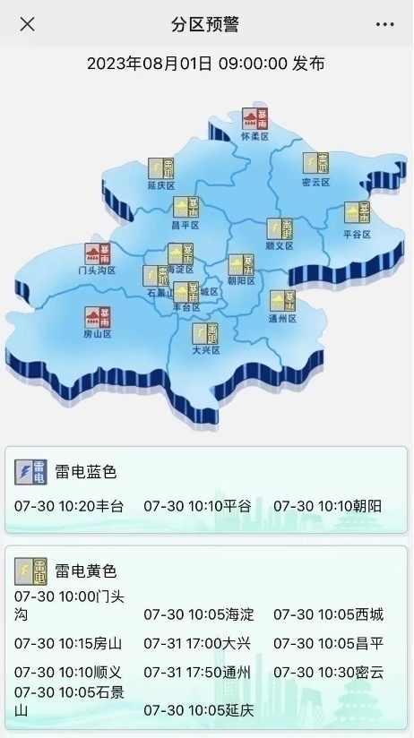 據氣象部門消息,北京發(fā)布暴雨分區(qū)預警:本市降雨趨于減弱,目前西部、北部地區(qū)仍處于暴雨紅色預警中,大部分區(qū)域降級為暴雨黃色預警信號,請注意做好防范。
