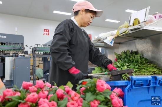 這是云天化晉寧花卉產(chǎn)業(yè)現(xiàn)代化示范園內(nèi)的鮮花包裝流水線(7月12日攝)。新華社記者 陳欣波 攝