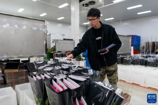 每天,由花農(nóng)采摘的鮮花進(jìn)入分揀包裝車間,預(yù)冷、分級、包裝、入庫冷藏等工作井然有序地開展。經(jīng)過采后處理的鮮花一部分通過園區(qū)自有物流直接向客戶發(fā)貨,一部分則由專門的鮮花運輸車運往昆明國際花卉拍賣交易中心,開啟拍賣流程。