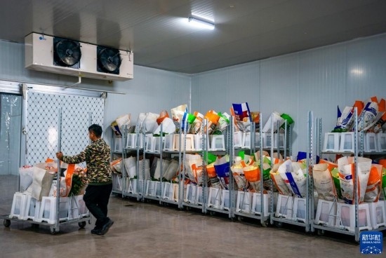 在云天化晉寧花卉產(chǎn)業(yè)現(xiàn)代化示范園內(nèi),一名花農(nóng)將新采摘的鮮花推入冷庫進(jìn)行預(yù)冷處理(7月12日攝)。新華社記者 陳欣波 攝