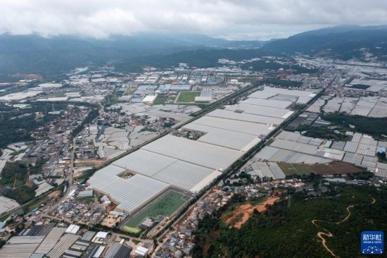 這是7月12日拍攝的云天化晉寧花卉產(chǎn)業(yè)現(xiàn)代化示范園(無人機(jī)照片)。新華社記者 陳欣波 攝