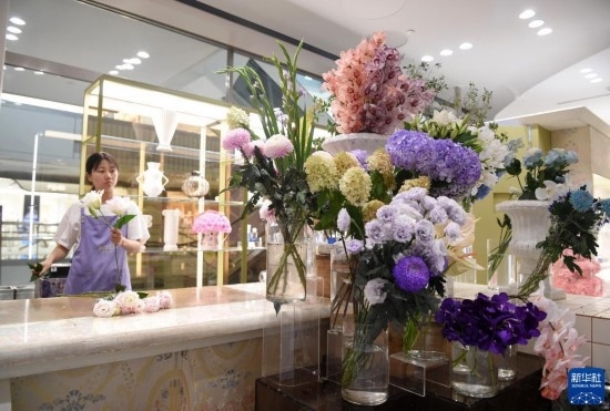 8月3日,在昆明的一家花店,店主在打理鮮花。新華社記者 陳欣波 攝