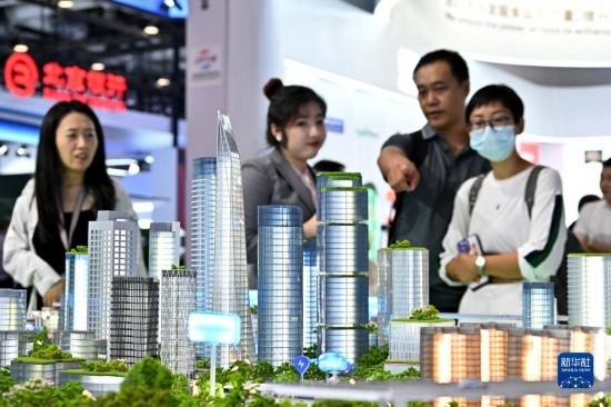 9月2日,觀眾在服貿(mào)會(huì)上參觀松下“未來智慧城市”沙盤。