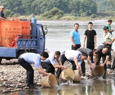 弋陽法院法官聯(lián)合相關部門開展增殖放流活動。