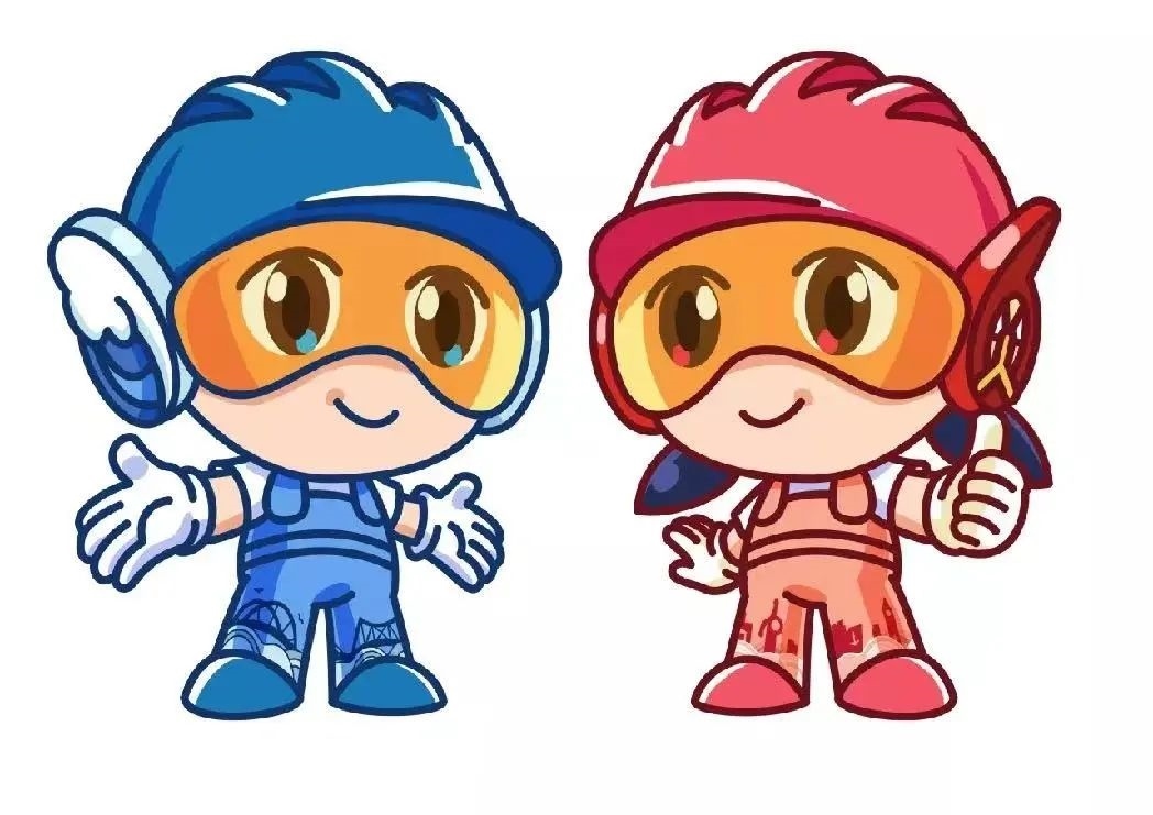 本屆大賽的吉祥物為“天天、津津”,形象為“一男、一女”兩個(gè)青年人物的造型,具有青春、活力、向上的鮮明特點(diǎn),色彩以藍(lán)色、紅色為主色調(diào),突出“技能藍(lán)、青春紅”,與大賽會(huì)標(biāo)“技”字標(biāo)識(shí)相呼應(yīng);服飾上通過統(tǒng)一的工裝服、安全帽、護(hù)目鏡、藍(lán)牙耳機(jī)等外形設(shè)計(jì),形象鮮明地展現(xiàn)新時(shí)代技能人才的外表特征;通過人物專注自信的表情和張開雙臂、舉手點(diǎn)贊等形態(tài),凸顯了技能人才“力爭上游、奮勇拼搏”的精神面貌和天津人民“自信包容、樂觀好客”的性格特質(zhì)。同時(shí),通過摩天輪造型耳機(jī)、特色橋梁、港口、天津新老標(biāo)志性建筑等形象設(shè)計(jì),展現(xiàn)天津的城市元素。