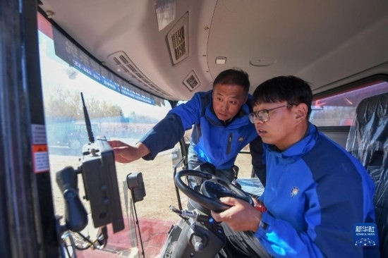 10月19日,在中國科學(xué)院“黑土糧倉”科技會(huì)戰(zhàn)長春示范區(qū)公主嶺示范基地,中國科學(xué)院東北地理與農(nóng)業(yè)生態(tài)研究所高級(jí)工程師陳國雙(左)與團(tuán)隊(duì)成員調(diào)試無人駕駛農(nóng)機(jī)。