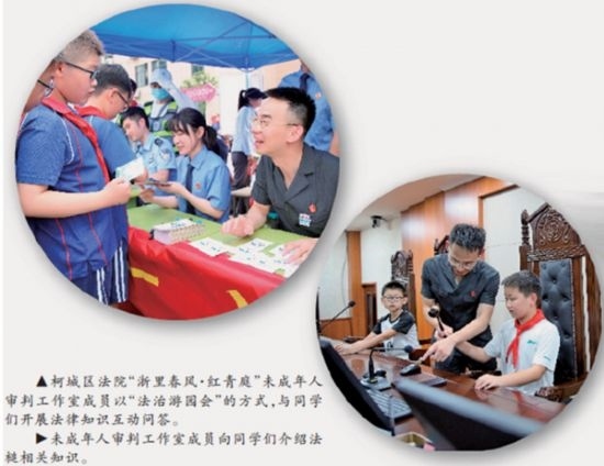 “‘紅青庭’品牌Logo中,‘紅’字既突出黨建統(tǒng)領(lǐng)又寓意紅領(lǐng)巾,是百折不撓的精神象征;‘青’字代表著青少年,是肩負(fù)未來(lái)的青春力量;‘庭’字則是指少年法庭和家庭。”胡衛(wèi)民介紹,柯城區(qū)法院依托“浙里春風(fēng)·紅青庭”品牌,成立青少年法治教育實(shí)踐基地和未成年人審判工作室,積極開展內(nèi)外聯(lián)動(dòng),在持續(xù)加強(qiáng)涉未成年人刑事、民事、行政審判融合的基礎(chǔ)上,不斷深化與公安、檢察、教育、團(tuán)委、婦聯(lián)等部門的協(xié)調(diào)配合,構(gòu)筑全方位、多鏈條的綜合司法保護(hù)機(jī)制。