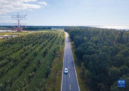 海南環(huán)島旅游公路是建設(shè)海南自貿(mào)港和創(chuàng)建國際旅游消費(fèi)中心的先導(dǎo)性項目,主線總里程約988公里,串聯(lián)沿途海灣、海角、特色小鎮(zhèn)、旅游景區(qū)和濱海度假區(qū)等,其中,東方段主線全長74.3公里,藍(lán)天、碧海、椰影、公路和行駛的汽車,構(gòu)成一幅美麗的畫卷。