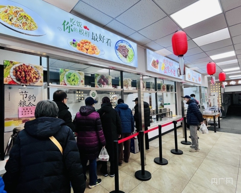 天津市和平區(qū)南營門街道老人家食堂內(nèi),老人們排隊就餐(央廣網(wǎng)記者 褚夫晴 攝)