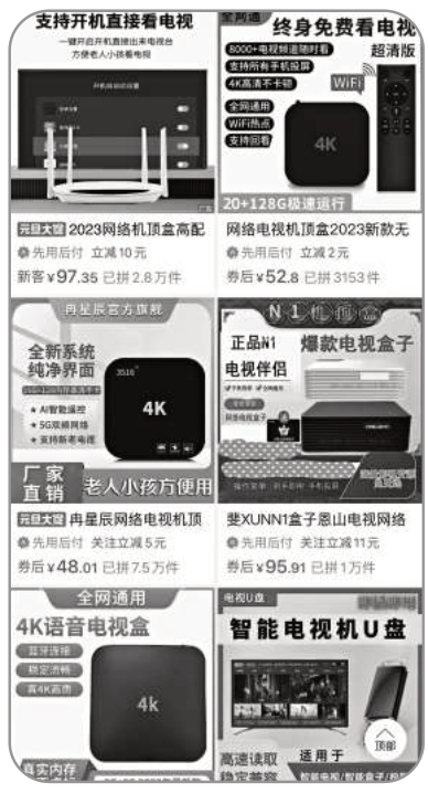 購物平臺上出售的網(wǎng)絡(luò)電視機(jī)頂盒種類很多。