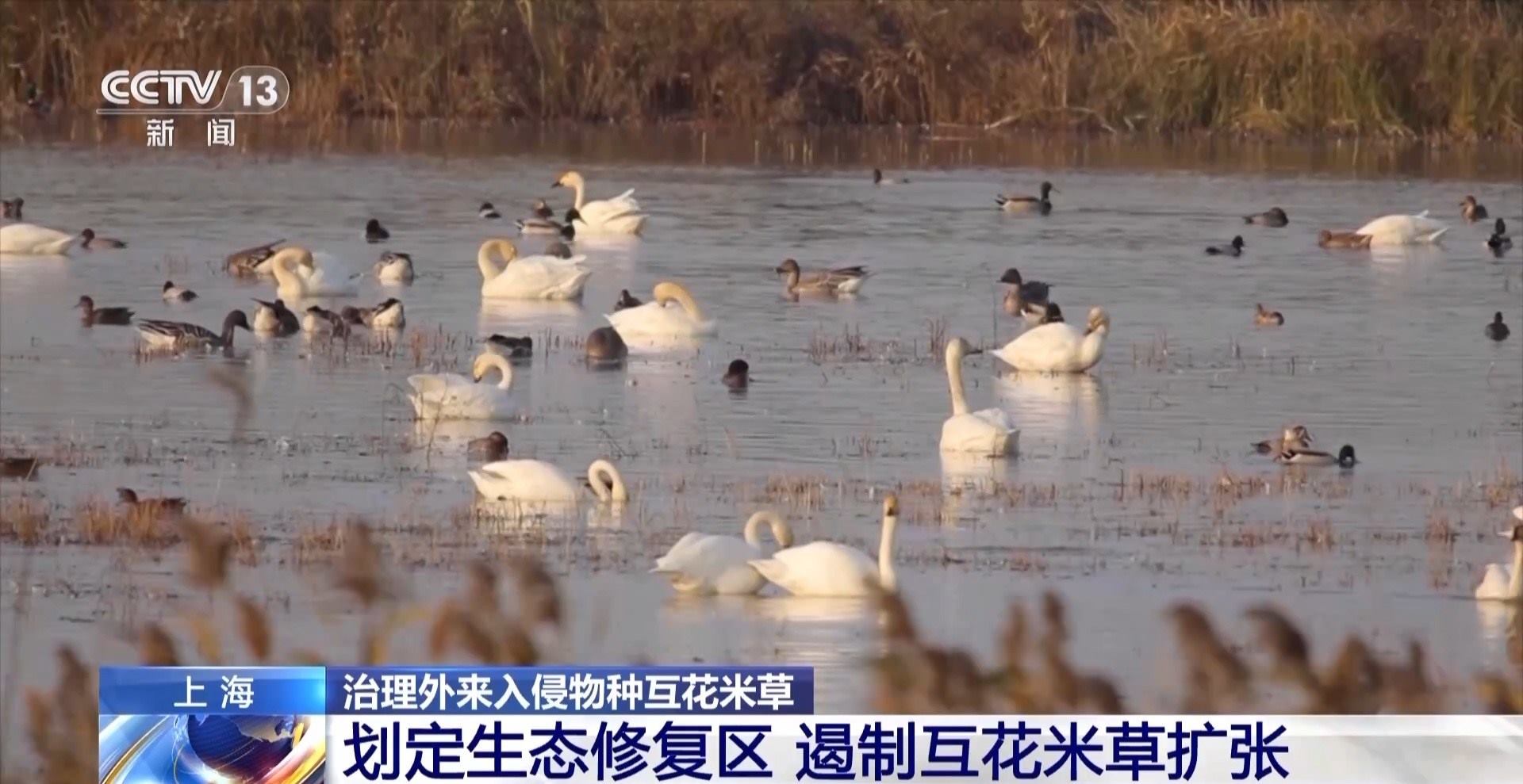 崇明東灘鳥類國家級自然保護區(qū)生態(tài)修復助理工程師 孫雪娜:經過我們科研監(jiān)測,發(fā)現(xiàn)互花米草它的根系很密,原本可能會在這里有非常多的底棲生物,比如說這個蟹類、貝類,但是因為它很密的這個根系,就導致這個底棲生物它沒有什么生存空間。然后對鳥類,它可能在這片取食的這個數量也很少,因為它可能沒什么吃的,所以這個生物多樣性就會很低。