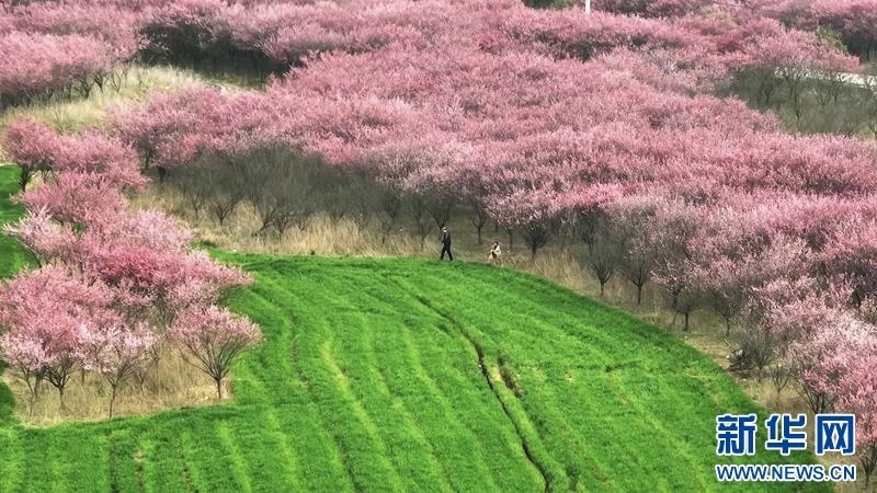 近日,湖北省老河口市李樓鎮(zhèn)鮑河村400畝紅梅次第開(kāi)放,園內(nèi)宛若一幅紅粉畫(huà)卷。