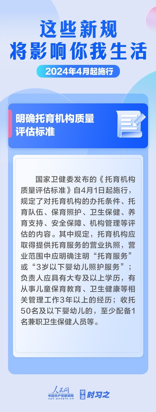 加強中央儲備棉管理;明確托育機構(gòu)質(zhì)量評估標(biāo)準(zhǔn);規(guī)范可再生能源電量收購……4月起,這些新規(guī)施行,將影響你我生活。