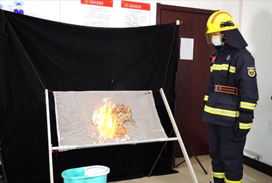 圖四:消防員在展示柳絮點(diǎn)燃實(shí)驗(yàn)。(來源:新華社)