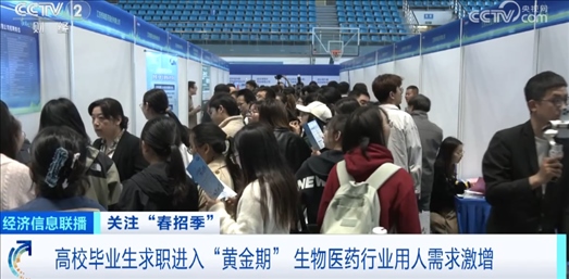 在江蘇南京的一場校園招聘會上,記者看到,生物醫(yī)藥行業(yè)的招聘企業(yè)占據(jù)了整場招聘會接近一半的展位。蔣素梅是一家醫(yī)藥研發(fā)企業(yè)的人力資源負責人,剛到招聘現(xiàn)場,就有不少學生前來投遞簡歷。