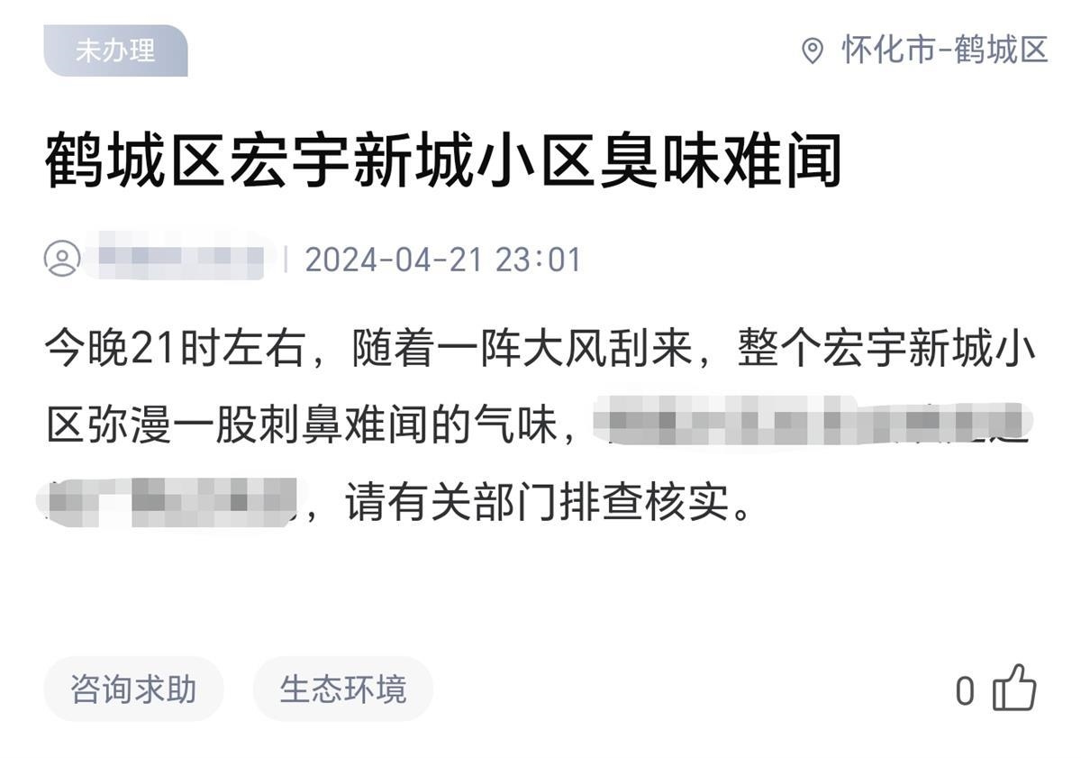 網(wǎng)友留言稱臭味難聞(來源:問政平臺)