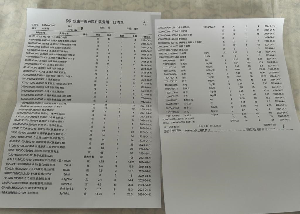 之后,在這名老人當(dāng)日的“住院費(fèi)用一日清單”上,憑空出現(xiàn)了“心電圖”“血液檢測”“尿液分析”等多個(gè)并沒有進(jìn)行檢查的檢測項(xiàng)目,總計(jì)花費(fèi)1313.86元?!皩?shí)際檢查也就300塊錢左右?!币晃粌?nèi)部人士透露。