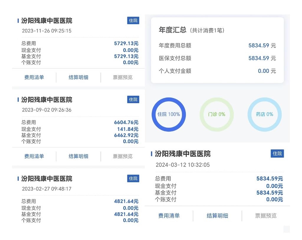 上圖是在國家醫(yī)保報(bào)銷平臺上查詢到的某位五保老人在殘康中醫(yī)醫(yī)院的醫(yī)保報(bào)銷記錄,2023年住院3次,2024年春季住院1次。(拼板照片)新華社發(fā)(楊哲攝)