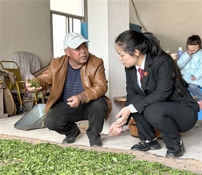 圖③:法庭干警為茶農(nóng)講解茶葉銷售時應(yīng)防范的法律風(fēng)險。