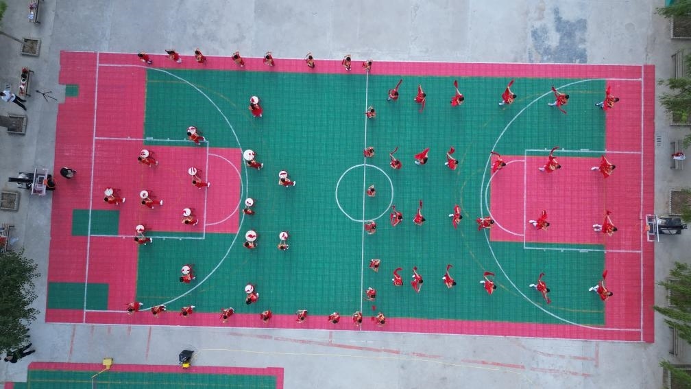 5月27日,肖紅坪小學(xué)的學(xué)生正在排練鼓樂表演(無人機(jī)照片)。新華社記者張智敏 攝
