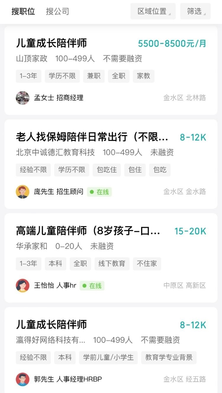 除了社交平臺(tái),記者在某招聘平臺(tái)上發(fā)現(xiàn),招聘兒童成長(zhǎng)陪伴師的帖子不在少數(shù),招聘方有些是家政公司,有些是中介機(jī)構(gòu),薪資從五千到四萬元不等。據(jù)了解,中介機(jī)構(gòu)給出的薪酬標(biāo)準(zhǔn)較為隨意,并且不繳納社保,有些還要收取第一個(gè)月工資20%的“中介抽成”。