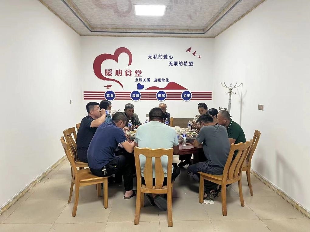 在山東德州陵城區(qū)一家村級(jí)“幸福院”,工作了一天的農(nóng)機(jī)手們正在吃晚飯。(受訪者供圖)
