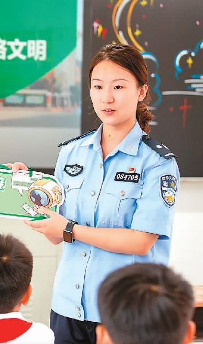 在安徽省蕪湖市繁昌區(qū)繁陽(yáng)鎮(zhèn)一所小學(xué),當(dāng)?shù)孛窬o小學(xué)生普及網(wǎng)絡(luò)安全知識(shí)。肖本祥攝(人民視覺(jué))