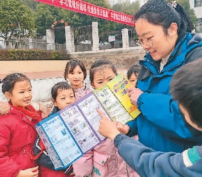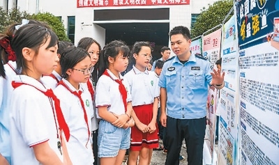 江西省宜春市公安局袁州分局鳳凰派出所民警在黃頗小學(xué)向?qū)W生講解防范網(wǎng)絡(luò)詐騙等知識(shí)。周 亮攝(人民視覺(jué))