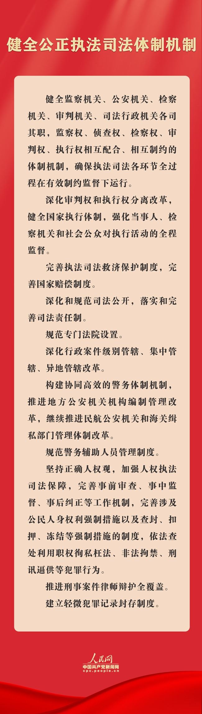 7月21日,《中共中央關(guān)于進(jìn)一步全面深化改革、推進(jìn)中國(guó)式現(xiàn)代化的決定》(以下簡(jiǎn)稱《決定》)全文發(fā)布。其中對(duì)完善中國(guó)特色社會(huì)主義法治體系作出部署,重點(diǎn)圍繞深化立法領(lǐng)域改革、深入推進(jìn)依法行政、健全公正執(zhí)法司法體制機(jī)制、完善推進(jìn)法治社會(huì)建設(shè)機(jī)制、加強(qiáng)涉外法治建設(shè)等方面,提出了法治領(lǐng)域改革任務(wù)要求。