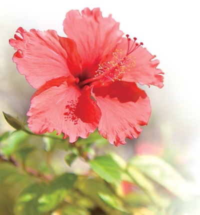 朱槿花大色艷,花蕊細(xì)長伸出于花瓣之外,花柱五裂,柱頭如粉球,花形俏麗喜慶,在我國兩廣地區(qū)被稱為“大紅花”,深受人們喜愛。在南寧,常見的朱槿花有十幾個(gè)品種,既有獨(dú)株高兩三米的小喬木、適合密植為樹籬的灌木,也有適合庭院、窗臺(tái)精巧布置的盆栽。