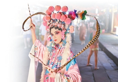豐富文旅業(yè)態(tài)戲曲演員在磁器口古鎮(zhèn)街頭表演。磁器口古鎮(zhèn)管委會(huì)供圖