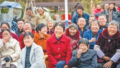 湖北省黃岡市英山縣楊柳灣鎮(zhèn)翻身灣村,觀看采茶戲的村民喜笑顏開。英山采茶戲是湖北極具特色的地方劇種,被列入湖北省第二批省級非物質(zhì)文化遺產(chǎn)名錄。王 江攝(人民視覺)