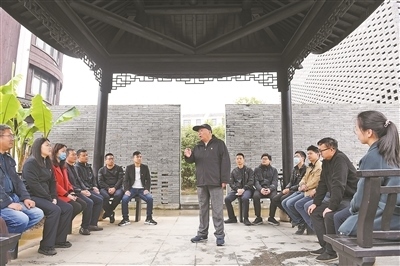 凝聚人心在浙江省諸暨市楓橋鎮(zhèn)魏廉村,老黨員魏杏根(中)給年輕黨員分享化解基層矛盾、團結(jié)鄰里的故事。新華社記者 翁忻旸攝