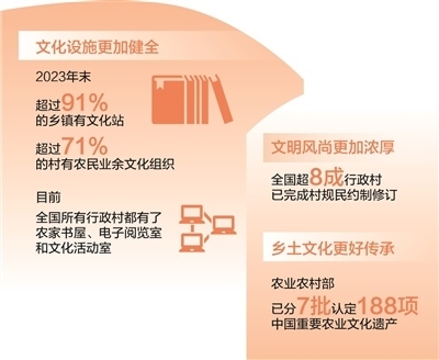 新時代以來,各地區(qū)各部門深入推進農(nóng)村精神文明建設(shè)。加快完善鄉(xiāng)村文化設(shè)施,健全農(nóng)村公共文化體系,農(nóng)家書屋、鄉(xiāng)村文化禮堂等打通文化惠民“最后一公里”;發(fā)展群眾性文體活動,廣泛開展“村BA”“村超”“村晚”等,豐富鄉(xiāng)村精神文化生活,展現(xiàn)鄉(xiāng)親們積極向上的精氣神;培育挖掘鄉(xiāng)土文化人才,引導(dǎo)文化工作者、科普工作者、文化志愿者等投身鄉(xiāng)村文化建設(shè);賡續(xù)鄉(xiāng)村優(yōu)秀傳統(tǒng)文化,把對非遺的保護傳承和開發(fā)利用有機結(jié)合,將藝術(shù)與古村落、古民居的活化利用有機結(jié)合;持續(xù)推進農(nóng)村移風(fēng)易俗,革除高價彩禮、人情攀比、厚葬薄養(yǎng)、鋪張浪費等陳規(guī)陋習(xí),反對迷信活動,推動形成文明鄉(xiāng)風(fēng)、良好家風(fēng)、淳樸民風(fēng);健全鄉(xiāng)村治理體系,有效發(fā)揮村規(guī)民約作用,推廣文明積分等方式,激勵農(nóng)民自覺踐行文明新風(fēng)……這些舉措為加強農(nóng)村精神文明建設(shè)提供了有力抓手,推動現(xiàn)代文明理念融入鄉(xiāng)村生活方方面面,為推進鄉(xiāng)村全面振興注入新動能。