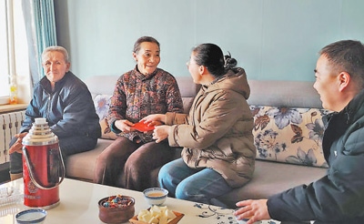 內(nèi)蒙古自治區(qū)錫林浩特市黨員干部來(lái)到錫林敖包社區(qū),看望慰問(wèn)困難老年人。