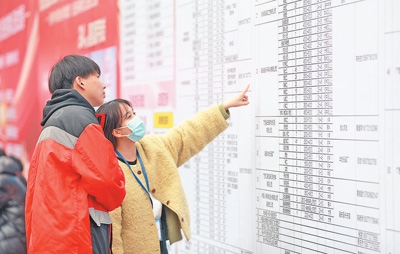 2月5日,在廣西柳州市融安縣2025年“春風行動”暨粵桂協(xié)作招聘會上,求職者了解就業(yè)信息。