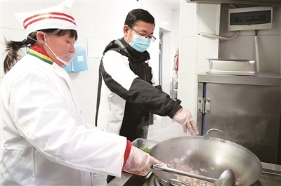 為了讓飯菜更適應(yīng)社區(qū)老年居民的口味,信義飯?zhí)玫淖鲲垘煾狄蔡匾庹{(diào)整了烹飪方法?!皝?lái)這里吃飯的主要是老年人,所以我把飯菜做得軟軟的,同時(shí)也少油少鹽,讓他們吃得更健康?!闭趶N房忙碌的吳師傅笑著說(shuō)。他系著干凈的圍裙,說(shuō)話間,正熟練地翻炒著鍋里的菜,陣陣香味撲鼻而來(lái)。