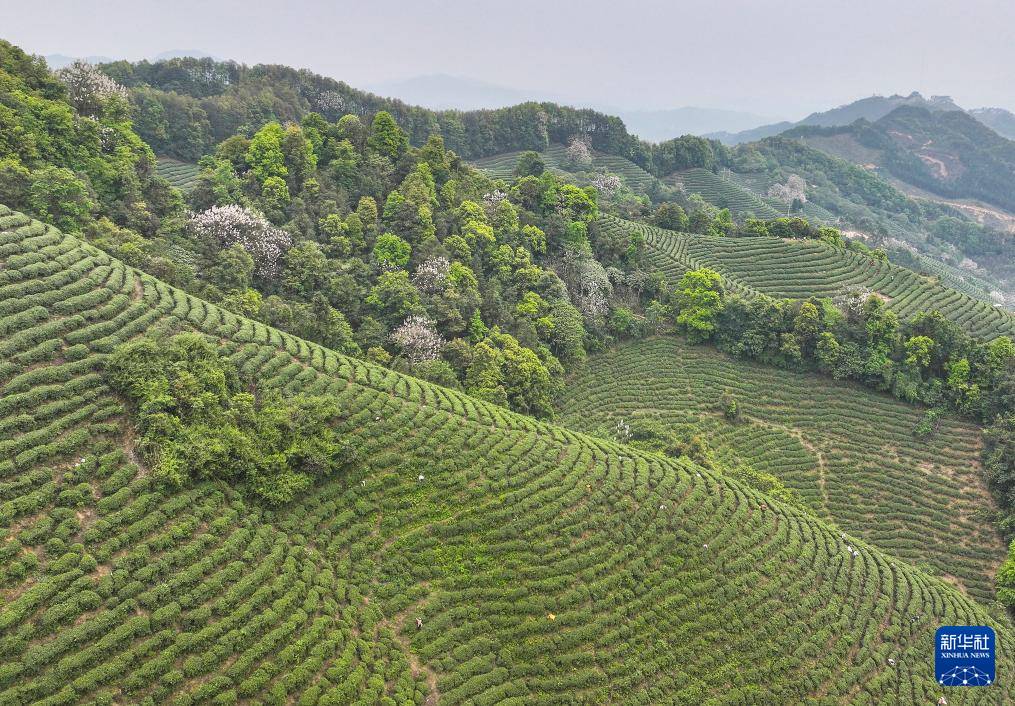 清明時節(jié)是春茶采摘旺季,茶農在茶園內忙碌,采制新茶供應市場。