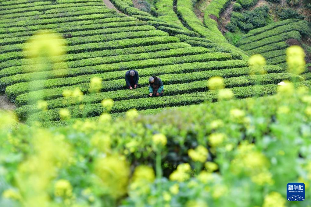 4月4日,茶農在湖北省宜昌市秭歸縣茅坪鎮(zhèn)長嶺村一家茶園采茶。