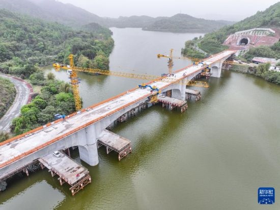 4月12日,由中鐵五局承建的成渝中線高鐵全線控制性工程玄天湖雙線大橋順利合龍。玄天湖雙線大橋全長(zhǎng)460.561米,位于重慶市銅梁區(qū)玄天湖4A級(jí)景區(qū)內(nèi),環(huán)保要求高,施工難度大。
