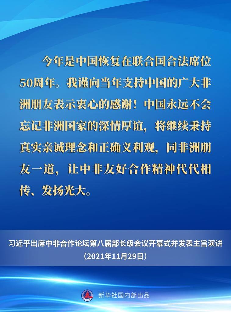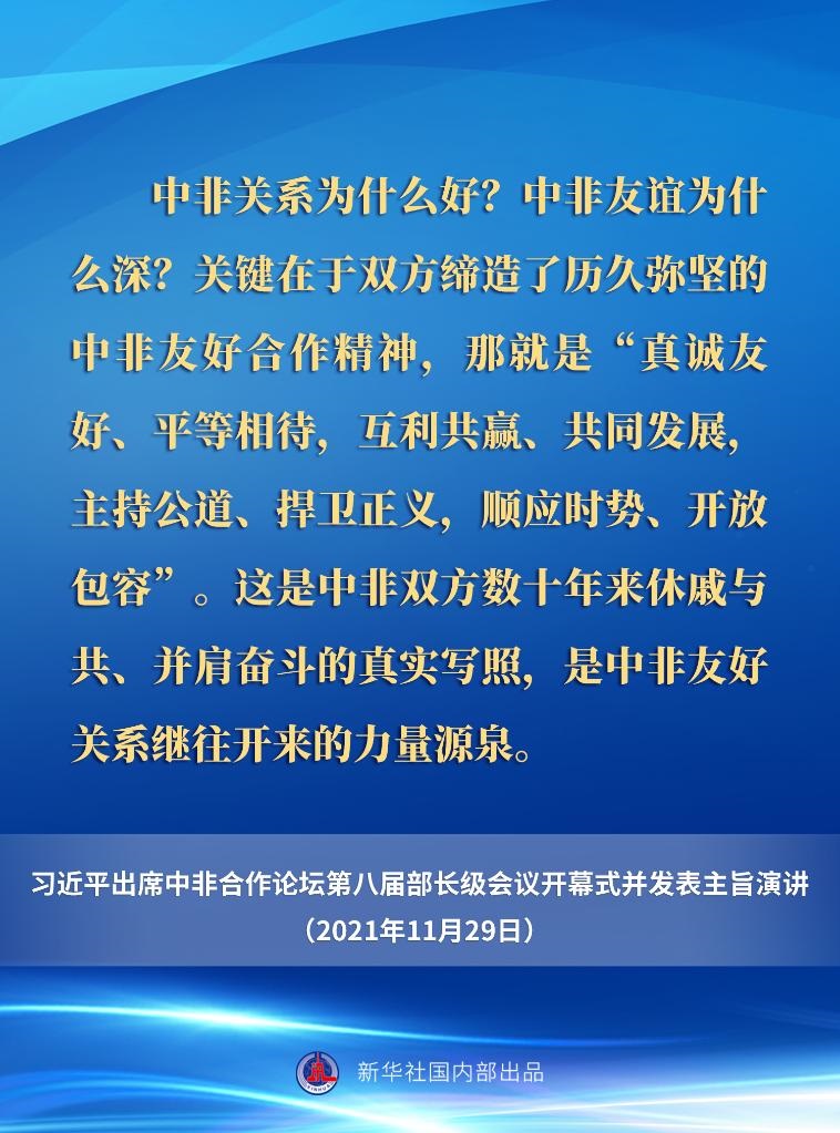 11月29日晚,國家主席習(xí)近平在北京以視頻方式出席中非合作論壇第八屆部長級(jí)會(huì)議開幕式并發(fā)表主旨演講。一起來看要點(diǎn)。