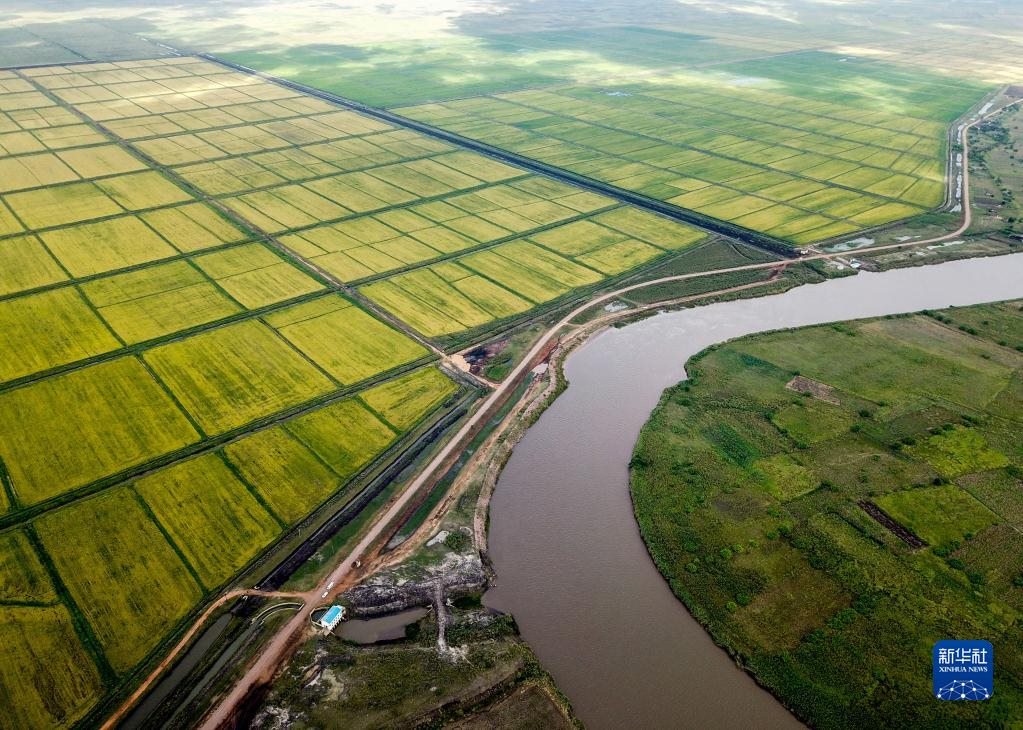 這是2019年4月7日無人機拍攝的莫桑比克萬寶莫桑農(nóng)業(yè)園的水稻田。萬寶莫桑農(nóng)業(yè)園是中國在非洲最大規(guī)模水稻種植項目,極大地緩解了莫桑比克糧食短缺問題。新華社記者張宇攝