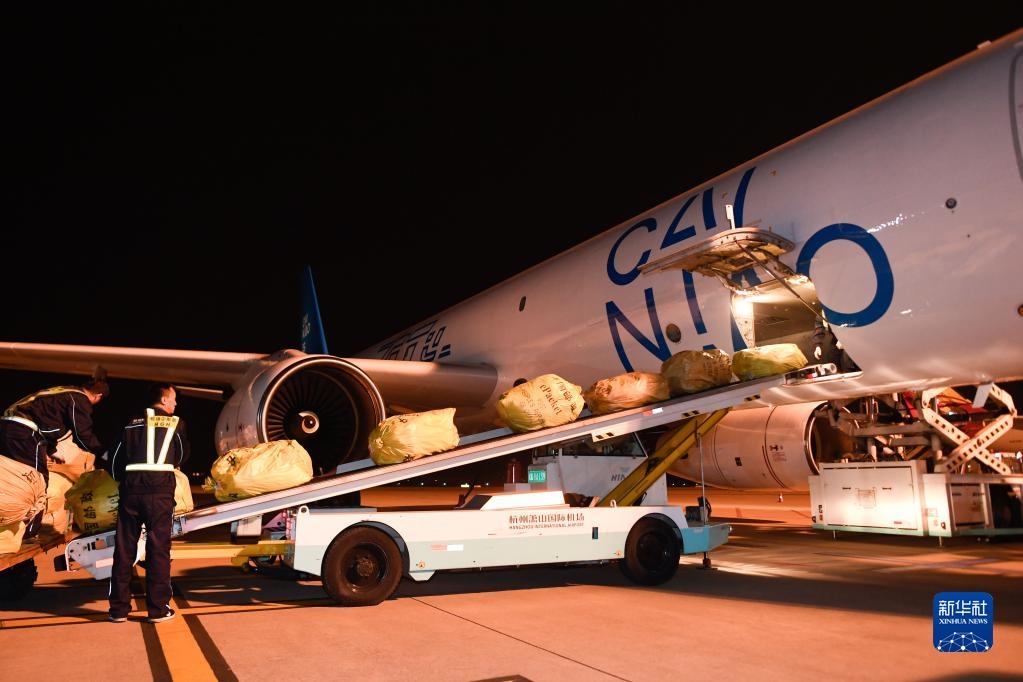 2019年10月30日凌晨,浙江杭州飛往俄羅斯首都莫斯科的首條直達(dá)電商貨運(yùn)航線“菜鳥號(hào)”從蕭山國(guó)際機(jī)場(chǎng)首航。新華社記者黃宗治攝