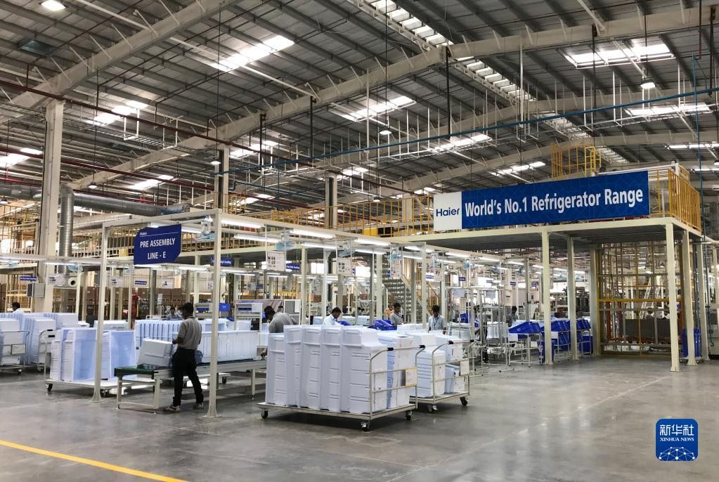 2017年11月16日,在印度浦那市,工人在中國(guó)海爾集團(tuán)工業(yè)園廠房?jī)?nèi)工作。新華社記者張興軍攝